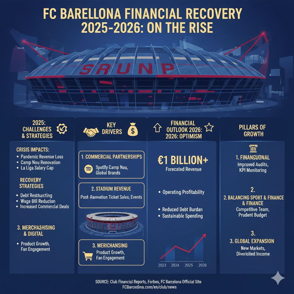 With a clear viability plan, a rebuilt transfer budget, and recovery in ticket and merchandising revenue, FC Barcelona looks to a stronger financial position in 2026. The completion of the Camp Nou renovations and ongoing commercial expansion financial benefits will be key to this upward trend.