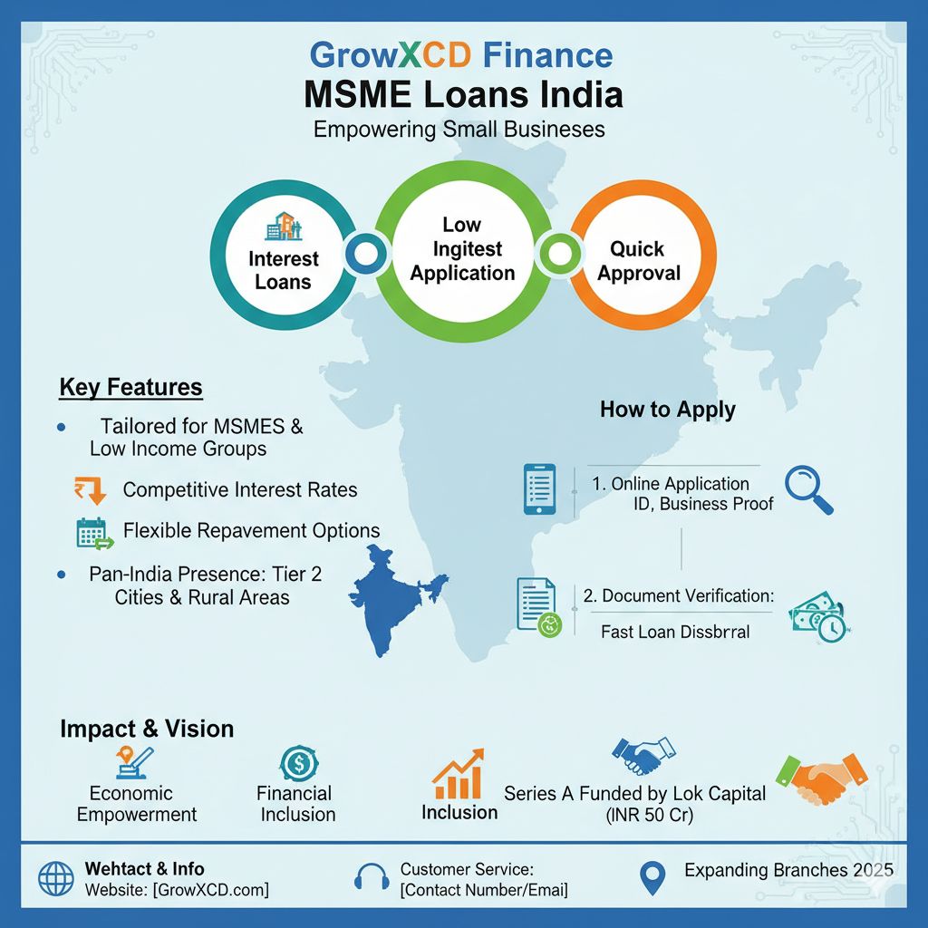 In the rapidly evolving Indian economy, Micro, Small, and Medium Enterprises (MSMEs) are the backbone of growth and employment. However, access to affordable finance remains a significant challenge for many of these businesses, especially in tier 2 and tier 3 cities. GrowXCD Finance MSME loans India are specifically designed to bridge this gap, enabling small businesses to thrive with the right financial support.