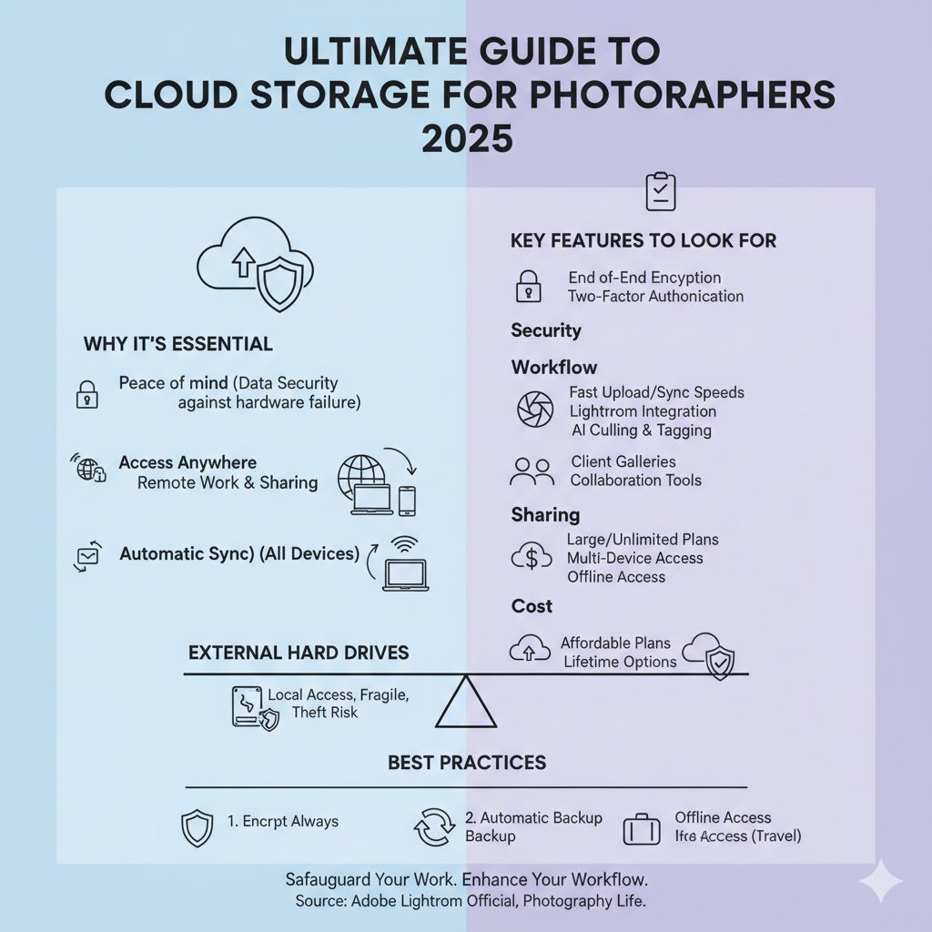 - Always use encrypted cloud storage solutions for photography studios or professional workflows.